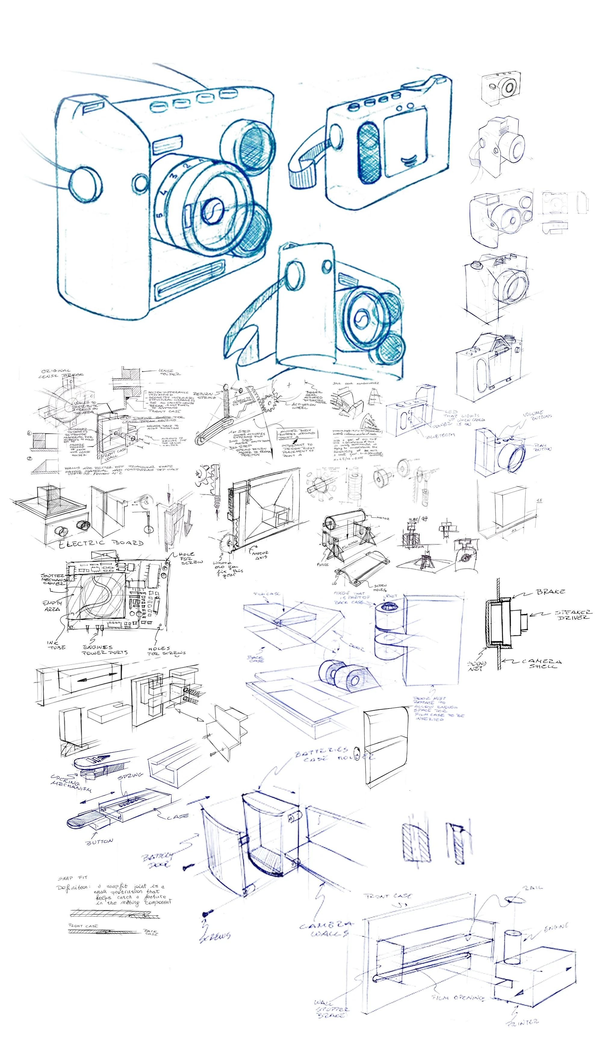 Decided to merge an instant camera and a speaker by considering the context of playing music socially and the need of immortalizing the shared feeling.